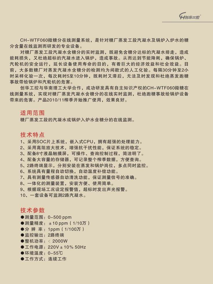 CH-WTF060微糖分在線測(cè)量系統(tǒng)