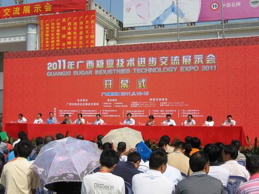 2011年5月18-19日,廣西首屆糖業(yè)技術(shù)進步交流展示會(簡稱“糖業(yè)技術(shù)展示會”)在南寧舉行。該展示會由廣西壯族自治區(qū)糖業(yè)發(fā)展局主辦,廣西糖業(yè)協(xié)會、廣西制糖學會、廣西甘蔗學會和廣西機械工業(yè)研究院共同承辦。參加糖業(yè)技術(shù)展示會的單位有:廣西壯族自治區(qū)工信委、農(nóng)業(yè)廳、農(nóng)機局等區(qū)直單位;廣西區(qū)內(nèi)主產(chǎn)糖市糖業(yè)發(fā)展局(糖辦);廣西區(qū)內(nèi)制糖企業(yè);國內(nèi)外參展企業(yè);中國糖業(yè)協(xié)會和廣東、云南、海南三省糖業(yè)協(xié)會等。到會領(lǐng)導主要有中國農(nóng)業(yè)科學院甘蔗研究中心主任李楊瑞、中國糖業(yè)協(xié)會副理事長兼秘書長閆衛(wèi)民、廣西糖業(yè)發(fā)展局副局長劉全躍、張魯賓等。會議規(guī)模500多人,是廣西糖業(yè)發(fā)展上規(guī)模最大的一次盛會。